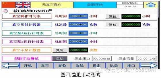 手動模式下,按下啟動鍵,當(dāng)系統(tǒng)壓力平衡后,將得到泄漏流量。模具泄漏量從1升/秒~5升/秒,取決于產(chǎn)品對真空度的要求。